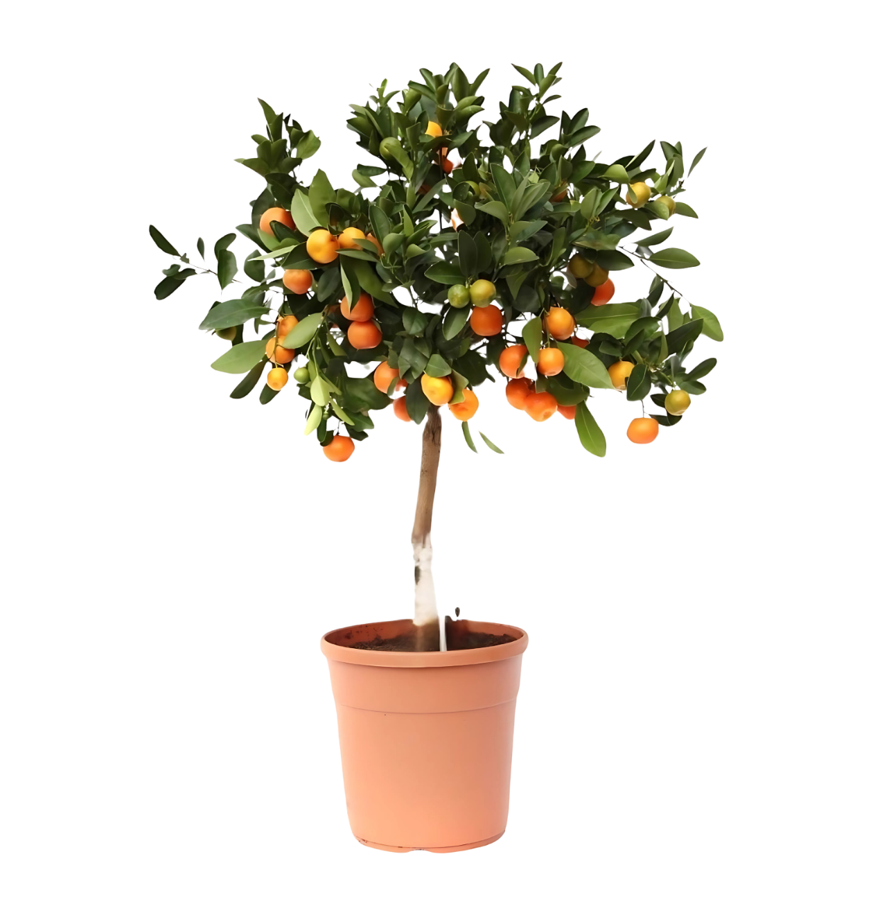 Der Zwergorangenbaum ist nicht nur optisch ein Highlight, sondern auch einfach in der Pflege. Er bevorzugt einen sonnigen, geschützten Standort und benötigt einen gut durchlässigen, nährstoffreichen Boden. Gieße die Pflanze regelmäßig, ohne sie zu überwässern – Staunässe verträgt sie nicht. Während der Wachstumsperiode zwischen Frühling und Herbst solltest du einmal wöchentlich einen Zitrusdünger verwenden, um das Wachstum der Blätter, Blüten und Früchte zu unterstützen. Besonders praktisch: Der Baum lässt sich im Kübel leicht bewegen und kann im Sommer draußen stehen, während er im Winter in ein helles, kühles Quartier mit Temperaturen zwischen 10 und 15 °C umziehen sollte. Seine Vielseitigkeit macht den Citrus Calamondin zu einem idealen Begleiter für jeden Pflanzenliebhaber.